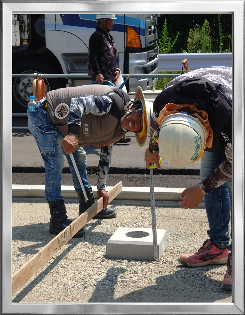 毎日、炎暑の中、体力や熱中症と戦いながら作業をしている現場はとても大変だと感じました。そんな過酷な現場の中で、仲間とふと笑い合ったり会話ができる雰囲気は、とてもいいなと思いました。