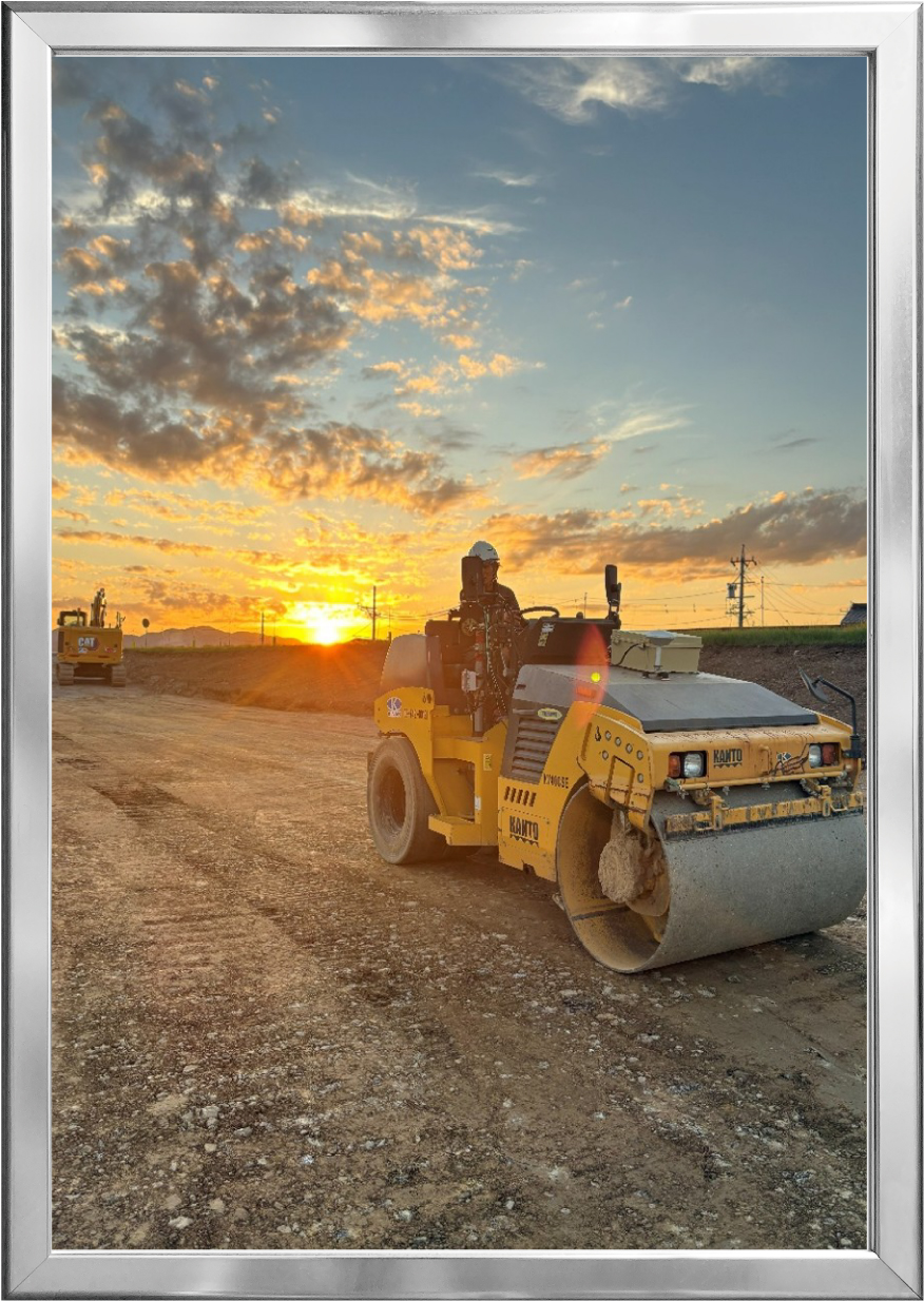 そんな堤防づくりの要となる作業を担う職人さんが、最後まで作業に向き合う姿と夕日が重なり、思わず写真を撮りました。